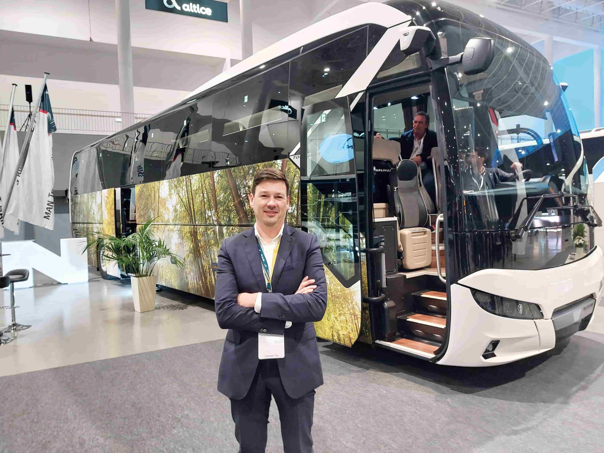 O novo cockpit digital com o inteligente sistema operacional MAN SmartSelect é um destaque especial e aumentará a atratividade do novo Tourliner. O modelo esteve em exposição na Convenção da ARP deste ano, realizada em Braga, ao lado do novo MAN Lion’s City E, o autocarro 100% elétrico da marca. Na foto, João Cruz, diretor da unidade de negócio Autocarros da MAN Truck & Bus Portugal.