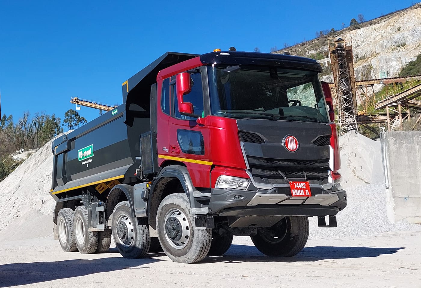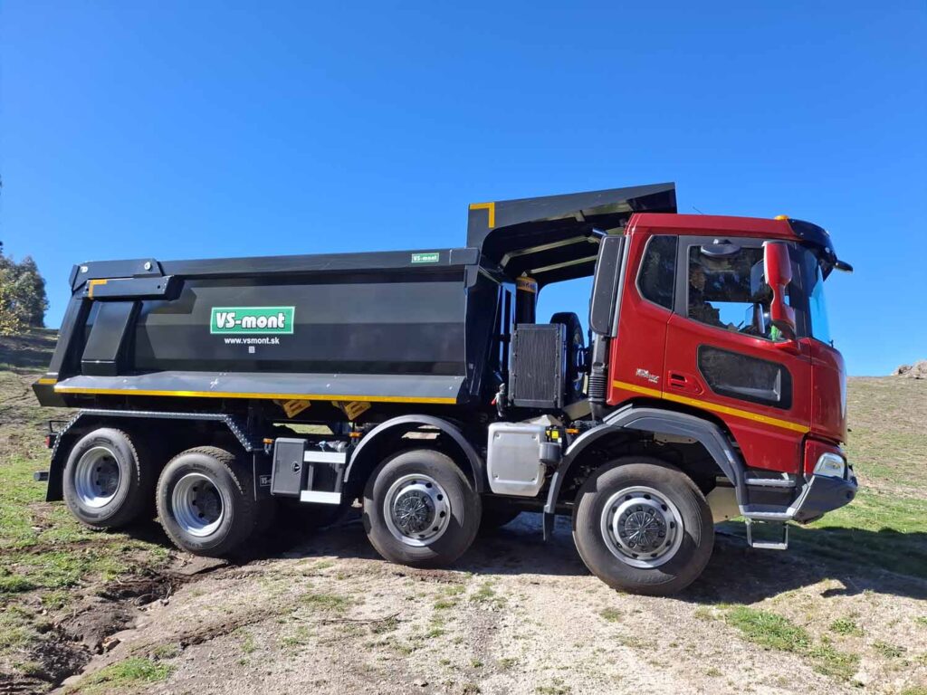 Assim, este 8×8 com basculante, é capaz carregar 30 toneladas de carga em obra, ou um volume de 20m3. Tem uma tara de 20 toneladas e um peso bruto máximo de 50 toneladas. Por comparação, um dumper similar carrega 34 toneladas de carga, ou um volume de 21m3, tendo uma tara de 30 toneladas.