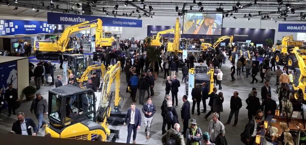 Na verdade, pode-se dizer que a exposição combinada da Komatsu constituiu um salão à parte, dentro da Bauma, em face à grandiosidade dos seus equipamentos no exterior e a beleza e qualidade das suas máquinas expostas no seu stand.