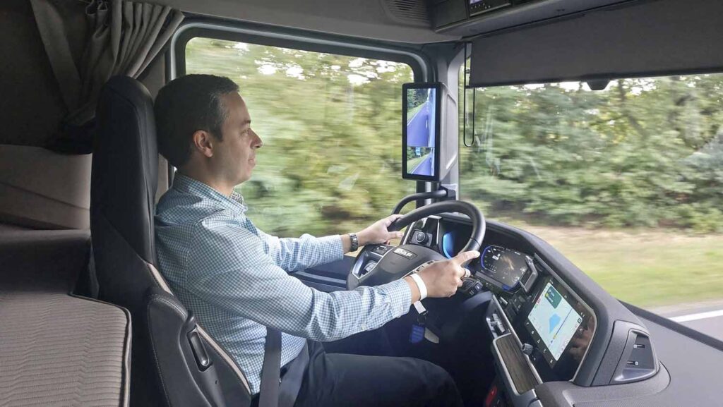De forma resumida, a experiência de condução da gama elétrica é muito similar à versão diesel no que diz respeito ao conforto da cabine, segurança, visibilidade para o exterior e sistemas de assistência à condução. A possibilidade de utilizarmos ação de três níveis de travagem regeneração, assemelha-se muito à utilização do retarder tal como os camiões diesel.