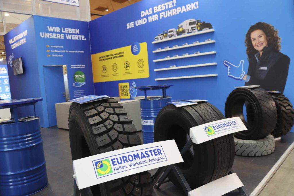Juntamente com a sua empresa-mãe Michelin, a Euromaster apresentou a sua vasta gama de serviços para frotistas, com espaços ajustados e funcionais. Para além da solução One Stop, a empresa destacou um pacote de serviços que abrange todos os principais requisitos da gestão de frotas. Nos últimos dois anos, esta rede oficinal pan-europeia acrescentou um serviço móvel para substituição dos vidros de camiões, que suscitou particular interesse entre os visitantes do seu stand no NUFAM.