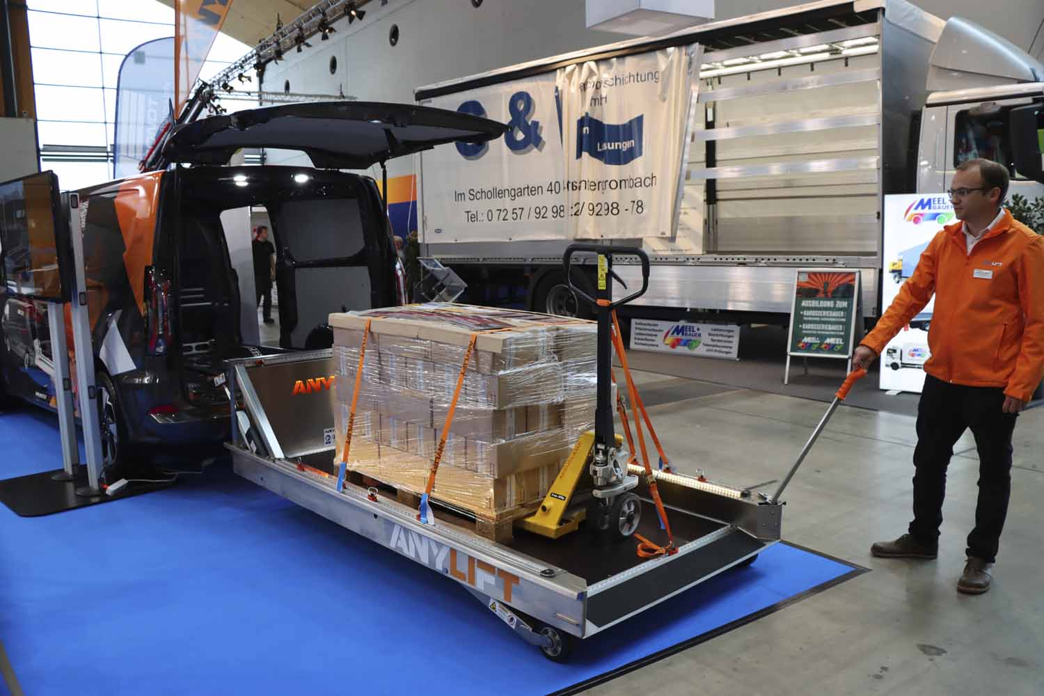 A empresa austríaca Anylift é recente no segmento de transformações, mas apareceu para colmatar uma lacuna no transporte: conseguir elevar cargas ou pessoas para um furgão em menos de 1 minuto, de forma segura, estável e sem necessitar de empilhadores ou outros equipamentos.