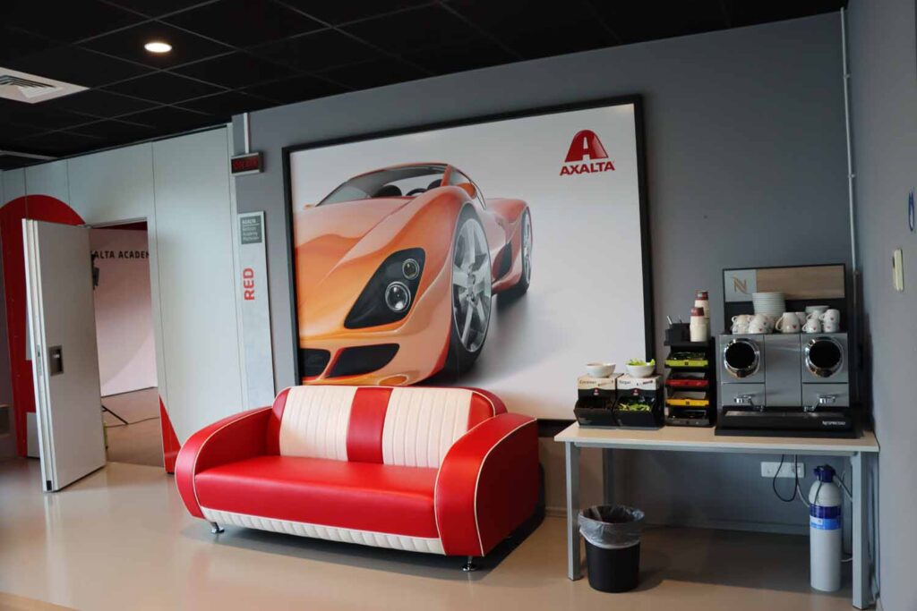 As nossas instalações são modernas e bem equipadas, mas o edifício é de 1988, onde chegou a existir uma importante fábrica de tintas para repintura automóvel da Axalta. A fábrica foi, entretanto, desativada, passando uma parte da produção a ser feita em Wuppertal (Alemanha) e, outra parte, em Guntramsdorf (Áustria). Nestas instalações chegámos a ter um laboratório de pesquisa, e aqui foram desenvolvidos muitos produtos que contribuíram para a boa reputação da Axalta.