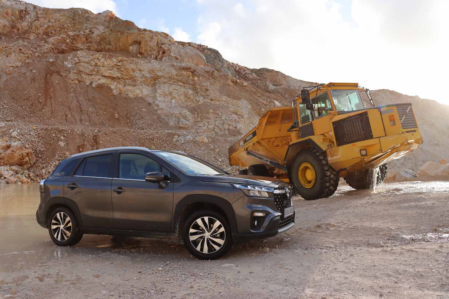 O S-Cross na pedreira também não se poupou a nada. Passou com distinção nas provas que efetuámos, combinando muito bem com o cenário da pedreira da Euroinertes, uma parceira nossa. O Suzuki enquadrou-se no espírito de trabalho que tem esta empresa, complementado o panorama das máquinas a operarem em um terreno muito exigente para qualquer veículo.