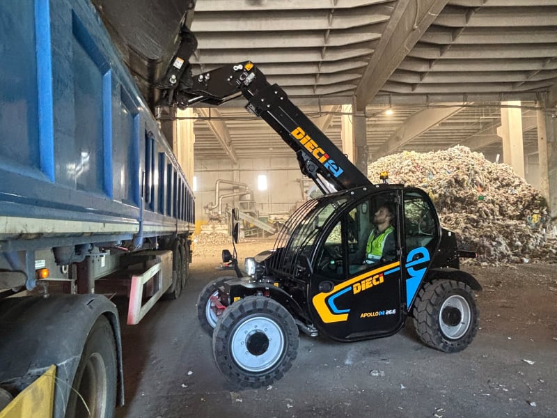 Especializada na gestão do ciclo de resíduos, a Calabra Maceri realizou, nos últimos anos, uma importante renovação do seu parque de máquinas, com equipamentos de trabalho ecológicos, como o manipulador telescópico elétrico Apollo-e 26.6. Um manipulador telescópico totalmente elétrico, que tem: dimensões compactas; transmissão totalmente elétrica; agilidade mesmo em espaços reduzidos; capacidade de carga de 2600 kg; altura de elevação de 6 metros e potência de 19 kW.