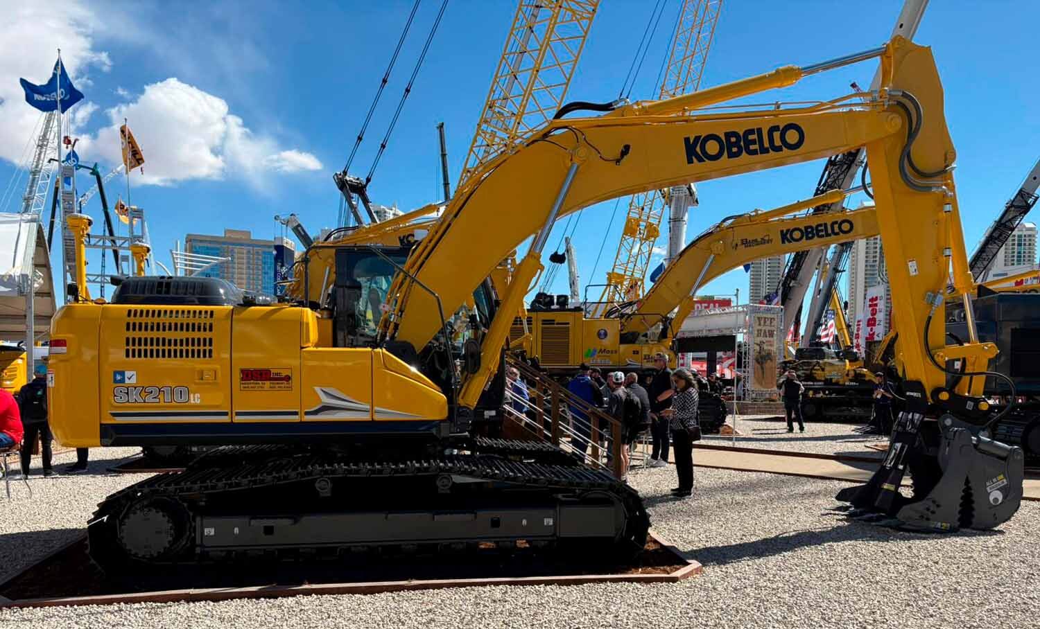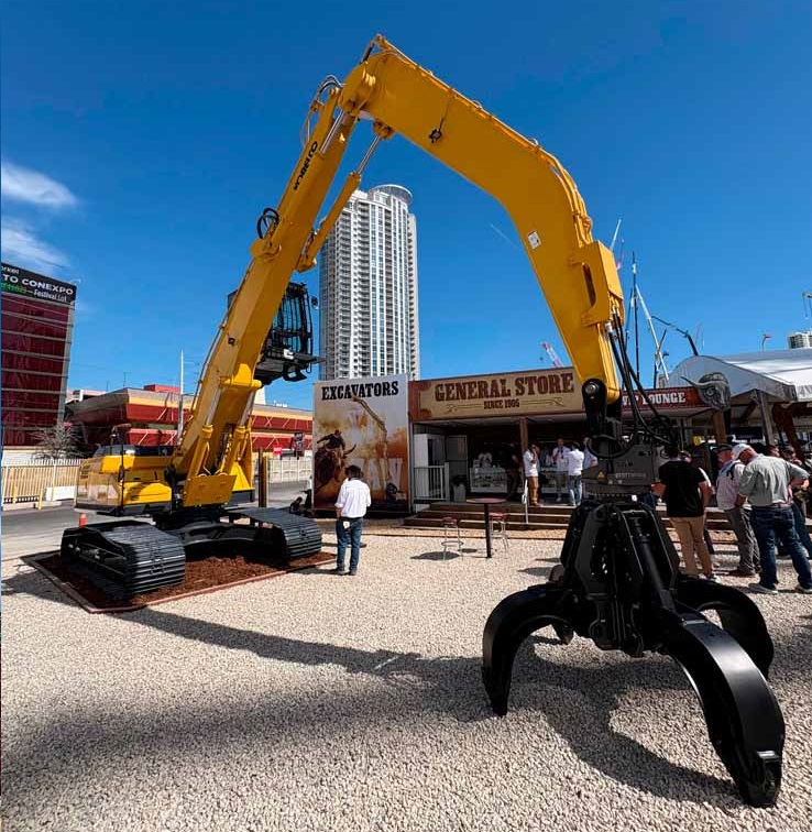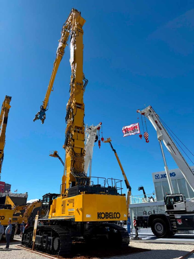 Com a presença na CONEXPO deste ano, a Kobelco reforça o seu posicionamento como fabricante focada em desempenho e aplicações específicas, acompanhando as tendências do setor sem abdicar de uma abordagem orientada para a eficiência prática no terreno. De referir que a Kobelco utiliza nos EUA a cor amarela nas suas máquinas por imposições legais do setor da maquinaria daquele país.
