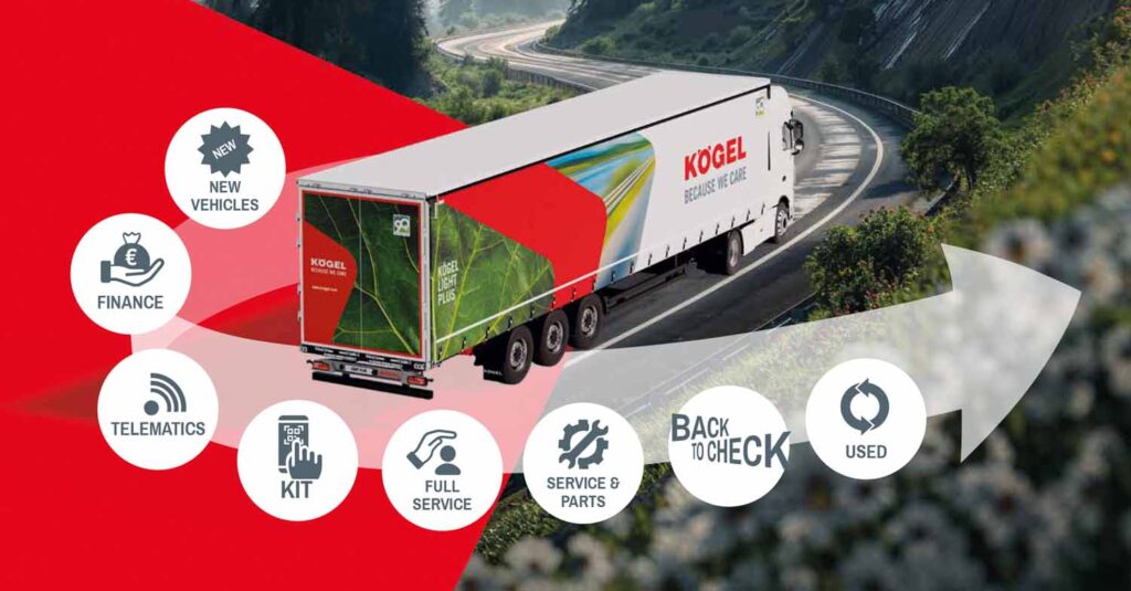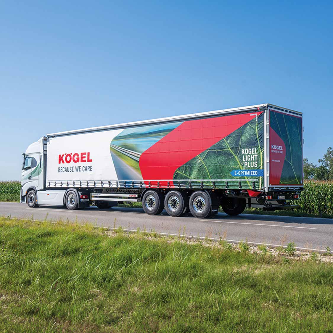 Com o Light Plus otimizado para eletricidade, a Kögel disponibiliza uma solução prática e tecnicamente sofisticada para os principais desafios do transporte elétrico de mercadorias pesadas. As empresas de transporte beneficiam de cargas úteis mais elevadas, de uma distribuição da carga por eixo em conformidade com a lei e da máxima eficiência na utilização de unidades de tração sem emissões. Em linha com o seu princípio orientador “Because we care“, a Kögel está assim a contribuir concretamente para o aumento da eficiência e para a transformação bem-sucedida rumo a uma logística sustentável.
